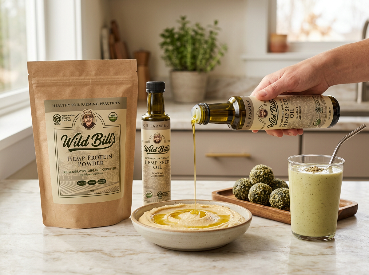 We grow hemp for quality, not speed. The result is clean seeds, rich oils, and complete plant protein that reflect the health of the soil they came from.